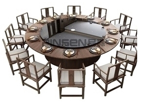 新中式實木玻璃轉盤包廂餐桌椅子組合